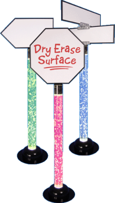Call attention to your message with a Sign Bubbler This dramatic " Sign Bubbler " column makes a unique addition to any company lobby, retail storefront, restaurant entry or any location where you want a message displayed. Eyes will be drawn to your message millions of gently rising illuminated and colored bubbles. Interchangeable color filters allow you to match the decor or set the ambiance in any environment. The double sided markerboard signs allow you to change your message easily and as often as you want. Choose from several sign shape options: rectangle, stop sign, arrow, and street sign.