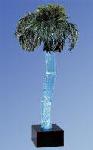 Clear acrylic palm stalks with gently wind-bent shapes permit the internal flow of color-coordinated bubbles. Rising from its black acrylic base that conceals its air pump, light fixture and interchangeable color filters are bendable silk palm fronds.